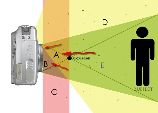 Unlike traditional film cameras that rely exclusively on reflected light, digital cameras also rely on a variety of transmitted signals to control things like auto-focus and other automatic settings. Since most of these signals are light based (either visible or infrared) they travel at a constant speed. When the signals intercept an object closer to the camera than the primary target, the reflection of the closer object arrives back into the cameras light sensor before the reflection in a more distant target.